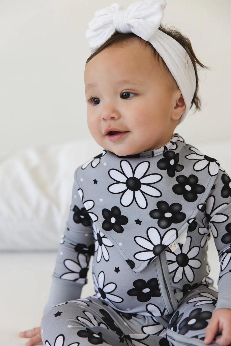 Our bamboo bibs are backed with terry to give your baby comfort along with extra absorption. These bibs feature adjustable snaps and are great for quick food cleanups, teething, or just to wear as an accessory.